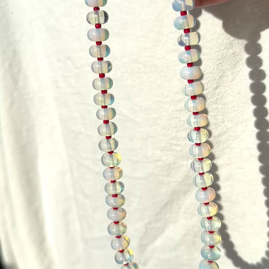 Chunky opalite and red seed beads