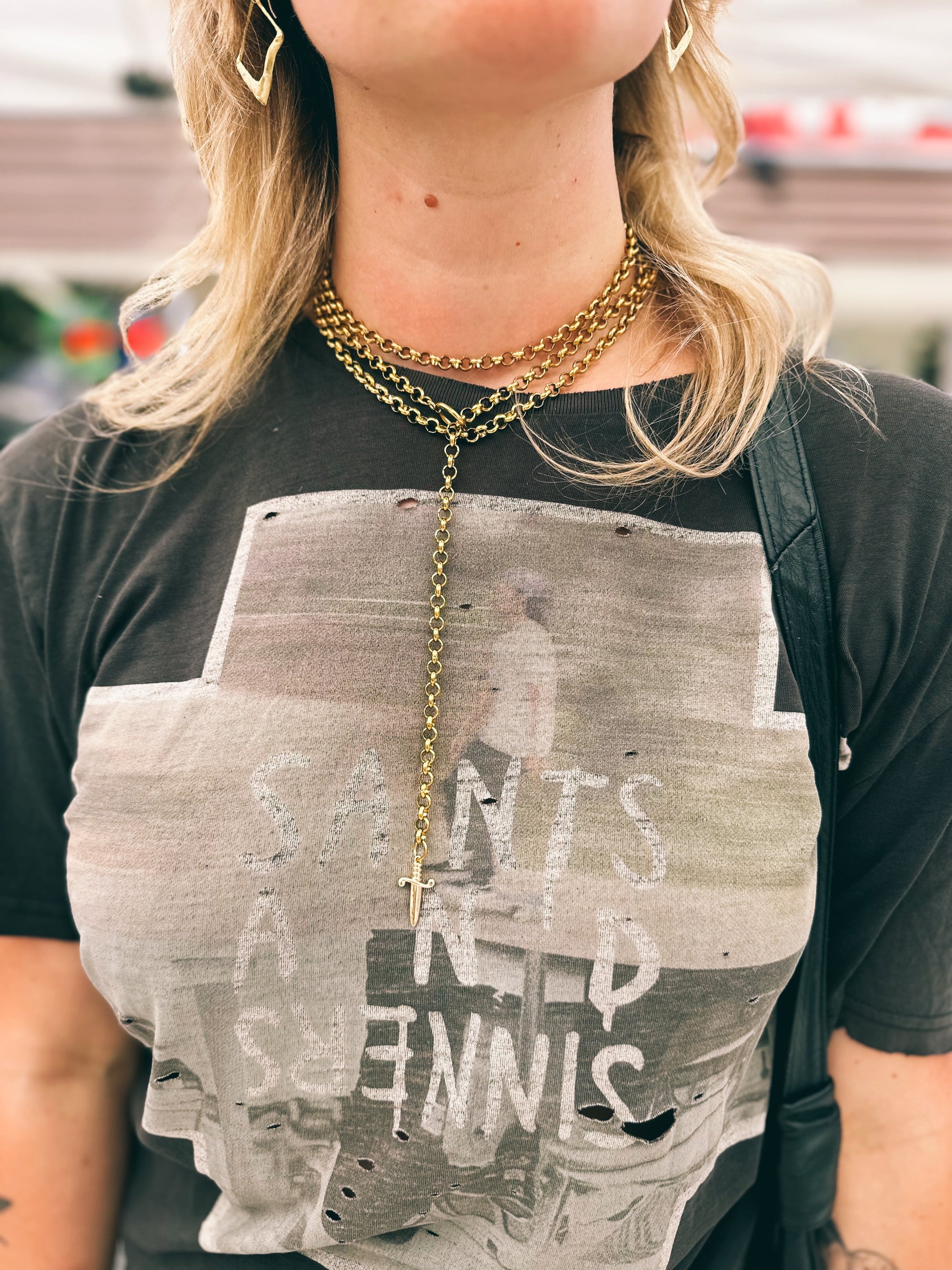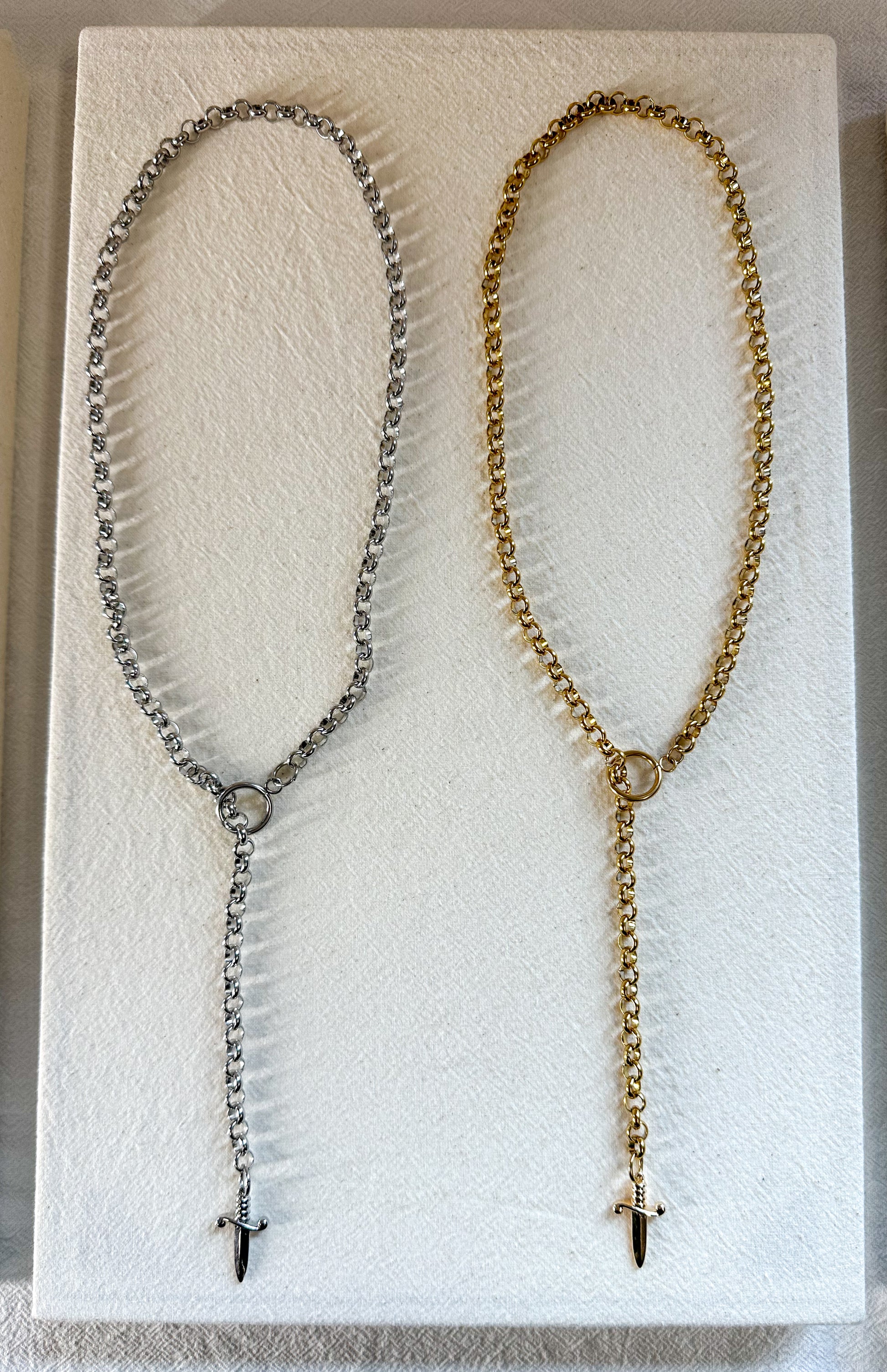 Adjustable length sword chain in stainless steel and gold plated stainless steel